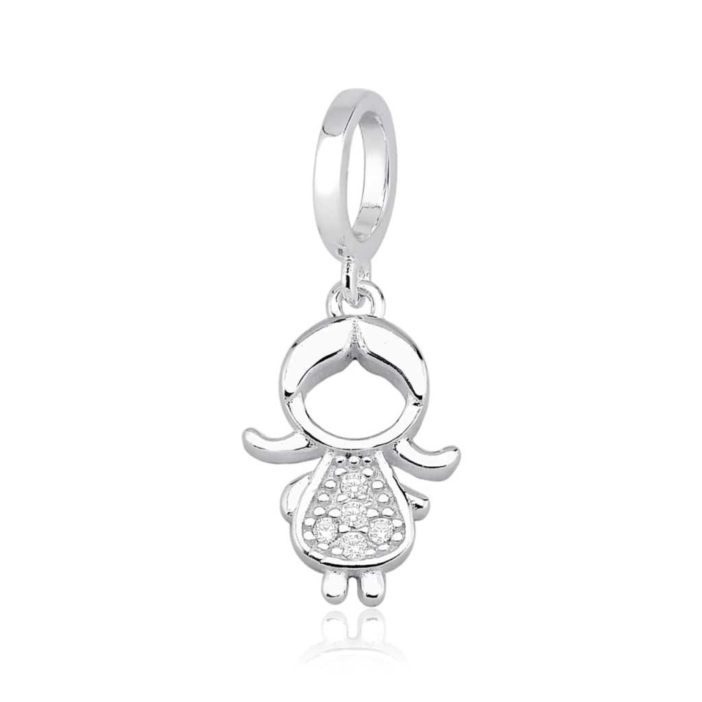 BERLOQUE COM PASSADOR FINO E LISO E PINGENTE DE CRIANÇA CRAVEJADO SUSPENSO